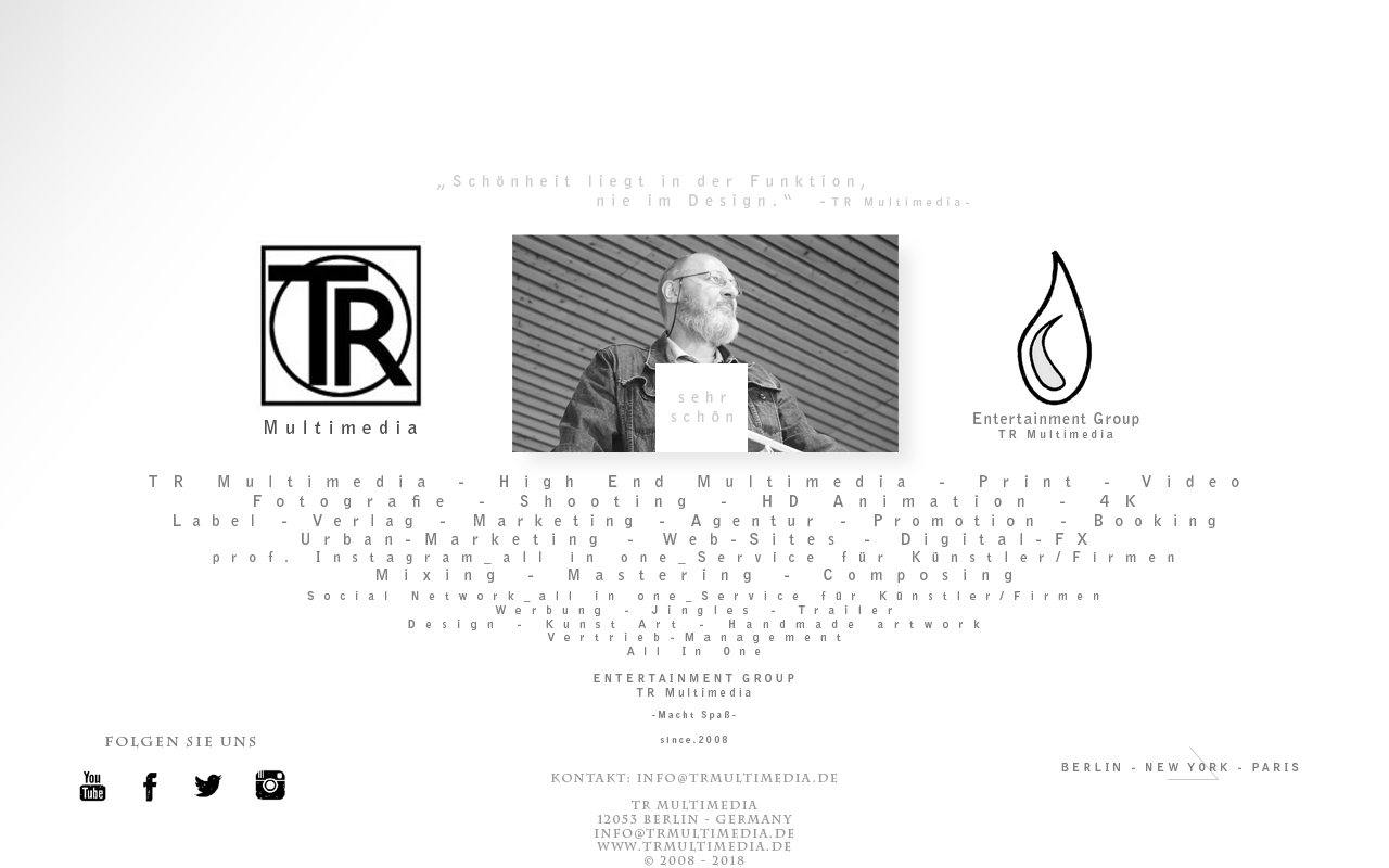 Angaben gemäß § 5 TMG: TR Multimedia, 12053 Berlin - KONTAKT: info@trmultimedia.de - VERANTWORTLICH FÜR DEN INHALT NACH § 55 ABS. 2 RSTV: TR Multimedia